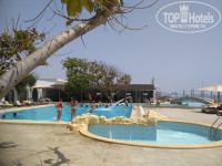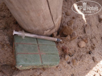 Пляж. Один справа без зонтов и практически нет шезлонгов. Слева с второй с грибками ( необходимо ремонтировать) и их не так много . Шезлонги частично с матрасами, но не на каждом. Хотите быть в теньке и с матрасом, занимайте равно утром. На пляже практически не убирают. Море не очень чистое. Много водорослей и бытового мусора. Периодически на берег выбрасывает горы водорослей, которые никто не убирает. Эти водоросли начинают преть пол солнцем издавая неприятный запах и проявляются мелкие мошки. Сколько не пытались ,чтобы работники пляжа убрали водоросли ничего не получилось. Они только кивали , говорили хорошо, но ничего не делали. Через пару дней все смывало в море и тогда образовывалась полоса шириной в метр. Небольшое болото, через которое приходилось пробираться до более чистой воды. Каждое утро я бродила по берегу и собирала крупный бытовой мусор, складывала в кучки. Тогда персоналу приходилось убирать, за это меня не очень любили. Самым большим шоком было утром под шезлонгом обнаружить использованный шприц с коробочкой из под каких-то веществ. Фото предоставлю ниже, но думаю его не опубликуют. Заставила персонал убрать, но поняла что для них это обычное дело. Все из-за того ,что местное население ходит в отель как к себе домой. Просто проходной двор. Это было ещё одним шоком. Я не против присутствия местного населения, но не в таком количестве. Конечно совсем бедные люди сюда не зайдут. Но все остальные приходят и приезжают на машинах. Как мне объяснили они оплачивают свое присутствие. Очень много местного населения появляется после обеда ( заканчивают работать) и по выходными. По выходным это вообще жесть. Если вы любите бассейн, то в выходные вы туда просто не попадёте. Местные только там и тусуются. Причем они разводят такую грязь вокруг бассейна и столиков возле него. Грязь уберут только завтра утром, в лучшем случае в 8 часов, а то и позже. Когда мы отдыхали проходил чемпионат по футболу местные просто не вылазили из бара до поздна , курили , пили и орали.