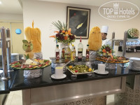 Завтраки. Как и везде все одинаково.Омлет,салаты,блинчики,хлопья,каша овсяная(жидкая),сосиски с овощами жаренные,рис и т.д..Выпечка,вся однообразная,только разные джемы добавлены. Кофе,чай, сок(юппи).Сам делаешь у бара,т.к. утром он не работает.