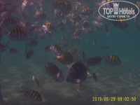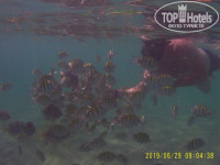 2. Купайтесь там где просвечивается песок (светлый цвет океана), там где темные пятна - кораллы а на них куча морских ежей. Обязательно берите с собой вареные яйца и булочки!!! Подкармливайте моих полосатиков, хирургов и прочую нечисть)