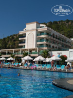 Вернулись из этого отеля 3 дня назад. Расположен он удачно, от аэропорта всего час езды. Разместили нас быстро, так как приехали мы в 15.20, но с обедом - пролетели. Пришлось перекусить гамбургерами из снэк-бара. Сразу отмечу, что из всех снэк-баров, работавших в отеле, по мнению моих детей, которые, в принципе, любят такую еду, вкусными были: пицца, вафли и картофель фри. В ресторане питание было нормальным, но довольно однообразным. Лишь в один день нас побаловали раками, мидиями, кольцами кальмара и роллами. Последние были совершенно невкусные. Фрукты, выпечка и сладости были постоянно. Теперь о пляже: мелкая галька слева, и большие камни справа. Лучше всего заходить в воду с пирса. Лежаков достаточное количество. Ну, и о номере, точнее о его уборке. Это, на наш взгляд, был единственный ощутимый минус. Даже за оставленное вознаграждение, номер убирали неважно. Один раз даже мусор из туалета не забрали. Но, в целом, отдых удался.