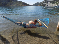 Отель находится в 2 км. от моря - пляж ресторана Маджестик. Очень неудобно туда ходит автобус от отеля. Я туда съездил один раз - вода не очень чистая, все таки Мармарис портовый городок. Один раз на пляж ездили в Ичмелер - спускаетесь вниз до Дворца Правосудия, далее садитесь на долмуш (оранжевый) до Ичмелера стоимость 3 лиры. Просите остановить на пляже. За 4х платили 9 лир, младший ездил бесплатно.