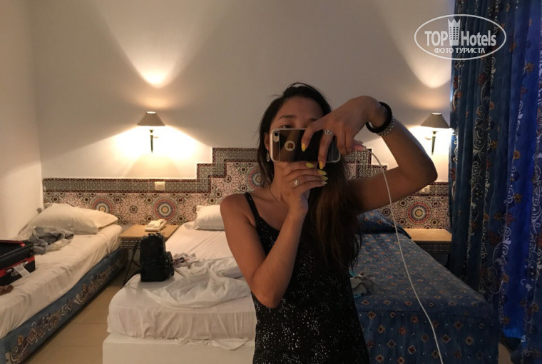 отдыхала в отеле в августе 2018г одна. заселили сразу по приезду в отель, Мужчина на ресепшене-приятный, общительный, доброжелательный. Долго выбирала комнату, пока не нашла подходящую-балкон выходил на бассейн. Не доплачивала, хотя другие туристы за вид на море этажах на 3(российском третьем, тунисском 2) доплачивали порядка 20 долларов. Номер большой, фото ниже, ездила по туру-вкл завтраки, еды достаточно-иогурты, соки,кофе чай, картофель, овощи,макароны,мюсли,багеты,оливки, пончики,джемы повидло-голодными не уйдете.до пляжа-завернуть за угол отеля. окно выходило на бассейн-шума и криков не было, спать ничего не мешало.удобно-перешагнула через перила и ты на бассейне.постельное меняли каждый день, уборка также.вайфай плохой и только на ресепшене.рядом кафе Fun Food-приятный парень Алладин, вкусная еда, особенно Дорадо на гриле.рядом есть DFC-острые бургеры, но вайфай скоростной как в России, и если кушать в Fun Food, то вайфай дотягивает из DFC и можно спокойно сидеть в интернете.обмен валюты на ресепшене, сейф.