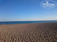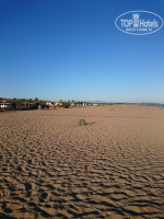 Пляж - широкий и длинный. Вход в море пологий, немного камней, потом песочек.