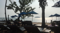 Пляжа, как такового, в привычном понимании, у отеля нет. Зато есть множество бесплатных лежаков с зонтиками, которых хватало всем и всегда. Заход в море по бетонным ступеням. Кто-то пишет, что там в воде камни и зайти в воду нельзя, так вот, это не совсем правда! Эти несколько камней находятся только в том месте, где надо делать первый шаг. Дальше же идет чистый песок с островками водорослей, которые в чистейшей воде отлично видны и поэтому их можно легко обойти. Глубина же зависит от приливов-отливов, которые зависят непонятно от чего, потому что сегодня, к примеру в 10 утра глубина 1 метр, завтра может быть 2 метра, а послезавтра вообще 50 см)))