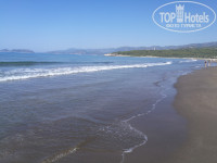Прекрасный чистый большой бассейн. Море, пляж песочный в двух шагах. Всегда есть свободные лежаки. Есть ещё один пляж рядом, галечный, там море поспокойнее.