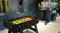 В самом холле установлены стандартные пуфики, диванчики. Есть настольный футбол. Висит плазменный ТВ.