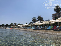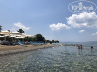 Выбрали этот отель, потому что мы рассчитывали на спокойный отдых с чистым морем, и на возможность ездить в Афины (час на автобусе). В окружении отеля только частные домики, других отелей не наблюдали. До ближайшего поселка 1,5 - 2 км пешком. Количество людей на пляже комфортное. Пляж свой при отеле. Море чистейшее. Первые 5 дней отпуска был штиль, последующие 5 дней отдыха были волны, но они тоже создавали свое веселое настроение) Лежаки и зонты -бесплатно. Мы вставали в 7 часов утра (с началом завтрака) и на пляже были в 8 часов, в это время достаточно много свободных мест на пляже. Заранее купили аква-обувь. В ней просто шикарно отдыхать на каменистых пляжах, и не горячо в полуденное время выходить из моря. Море каменистое, но сам пляж песчаный. Возле входа на пляж душ и мойка для ног. Возле бассейна бар, работает с 10 утра, там чай, кофе, мороженное, пиво, все вкусно.