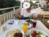 На ресепшене есть русско-говорящая девушка. К сожалению, нам так и не смогли найти свободный номер, когда мы хотели переселится в левое крыло отеля. В связи с тем что возле правого крыла (если смотреть на море) находится бар, впритык стоит с отелем. К музыке можно привыкнуть, если там не закатывают свадьбы и прочие банкеты, а также если отдыхающие не идут туда тусить, потому что в эти моменты музыка в разы играет громче, слышны все крики и возгласы празднующих...)) проблема в слишком близком расположении этого бара и в плохой шумоизоляции. Нам повезло познакомится таким образом с греческой свадьбой и не только, была вынуждена спуститься на ресепшен после полуночи и попросить представителя отеля пообщаться с администратором этого бара, просто попросить сделать музыку тише, так как в номере было как в клубе .....девушка (не помню ее имени) гречанка развела руками со словами "мы вам ничем помочь не можем"....после удалось пообщаться с мужчиной, который работал в отеле и говорил по-русски, он пообещал что-нибудь придумать. Еще один минус последних номеров, расположенных в этом крыле это - вытяжка с кухни, она повернута прям в сторону балконов, если ветер соответствующий, то свежим морским воздухом не подышишь))).