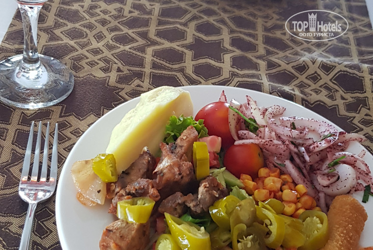 В отель мы прибыли в 9 утра. Про заселение в 14 00 мы были в курсе и это не было сюрпризом. Сам отель находится на возвышенности и этажность у него не обычная. Т.е. мы жили на 3 этаже отеля, но фактически этот этаж был на уровне 9 этажа зданий через дорогу. Вид был отличный. Лобби отеля просторное и прохладное. На этом этаже находится как и стойка ресепшен, так и лобби бар. И на всей протяженности этажа есть балкон со столиками. Браслеты-проходки повесили сразу же и пригласили на завтрак. Ресторан находится на -1 этаже. Очень просторный. Даже в самое пиковое время можно найти столик. Ассортимент блюд есть на любой вкус. Еда ресторана придется по вкусу как любителям острых, так и сладкоежкам. Вся продукция свежая и вкусная. Пустые блюда быстро сменяют на только что приготовленные. За неделю пребывания там еда не надоела. И всегда было что то новое. Также периодически, обычно утром и вечером, работала также гриль-зона, где готовили шашлыки, кебабы или шаурму. Это единственное место, где была очередь. Вся остальная еда была в свободном доступе без каких либо очередей.