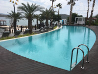 Изумительная голубая вода бухты, которая ласково накатывает на берег.. огромные, мягкие пляжные полотенца, деликатные официанты, которые всегда рядом и готовы доставить тебе лимонад или прохладный просеко.