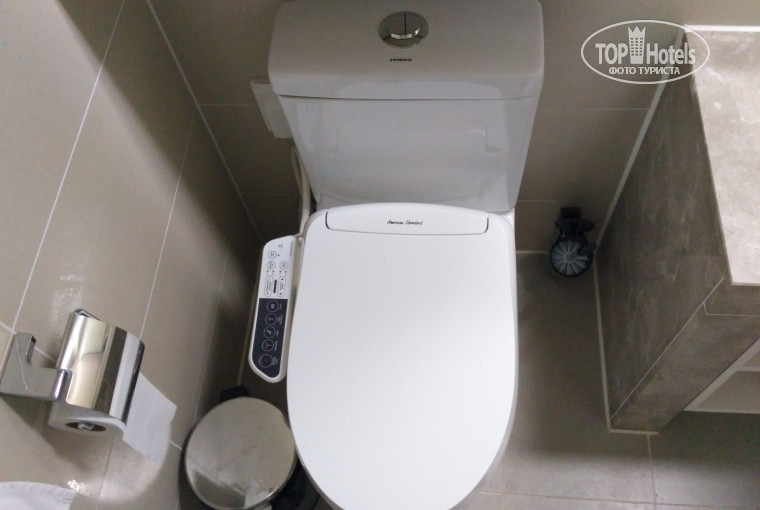 Унитаз с подогревом, сенсорные кнопки выключения света, сенсорный кодовый замок в номер.