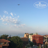 Прилетели мы вечером, заселили нас очень быстро и без проблем. Номер достала хороший, вид из окна был на соседнюю улицу, но я ехала туда не за видами в окне. Отель расположен в районе Султанахмет, а от него всего 10 минут медленным шагом по красивым улочкам до основных достопримечательностей: Голубой мечети, Святой Софии, Дворца Топкапы и других. За отелем находится старая железная дорога, но никогда никакого движения по ней я не слышала. Интернет в номере работал исправно, без перебоев. В номере есть чайник, чай, кофе, вода в бутылках. Полотенца меняли каждый день, убирали регулярно и хорошо.Завтраки подают на террасе, откуда открываются невероятные виды на Марморное море, азиатскую часть города. Питание разнообразное и хорошее, все вкусное и свежее. На ресепшене есть русскоговорящие парни, которые и подскажут, и проведут, и деньги разменяют по курсу обменника, без обмана. Утром в день выезда сообщили, что за нами приехал трансфер, выселились мы за 3 минуты без доплат и задержек. Рекомендую отель всем, кто летит впервые или не впервые, всем, кто не говорит на английском. Да и во всех случаях - просто рекомендую.