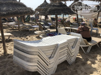 Лежаки не обязательно ставить самим, для этого на пляже отеля есть несколько пляжных работников, которые бесплатно помогут поставить лежаки или найти свободные.