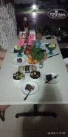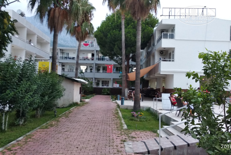 ПИТАНИЕ. Вкусно. Наблюдала разгрузку овощей - всё свежее. Повару большое спасибо, особенно за баклажаны и салат с курицей и солеными огурцами. Некоторые отдыхающие как с голодного края... Наберут горы еды, а потом не справляются... Блюда выставляют за какое-то время до еды, а для них - это уже сигнал к штурму. Кому понравится, если ты пришел на работу пораньше, а тебя сразу взяли в оборот? Порционное мясо (курица, индейка, куриные наггетсы, соевые котлетки, по субботам - шаурма), в добавке не отказывают. Мы насчитали 16 "лотков" с различными блюдами, не считая фруктов. Завтрак скудный, как и в любой трёшке. Понравились разве что трубочки с творогом. Ужин - самый вкусный прием пищи. Фрукты - сладкие арбузы, сливы (чаще всего были неспелые), яблоки. Десертов нет. Один раз давали манник, один - шоколадный пуддинг и какие-то турецкие сладости. Из гарниров - картофель тушеный, фри, булгур, рис, макароны, тушеные овощи. Вкусные супы-пюре. Свежий хлеб, белый и отрубной. Соки (заметьте, не юпи, а пакетированные) - вишня, яблоко (оба кисловаты), персик. Гадкий кофейный напиток из автомата и ароматный чай из бойлера. Алкоголь: пива нет, вино красное и белое из полуторалитровых бутылок (опять же как везде). 150 метров - минимаркет (там есть всё!!) Вкусное мороженое - 3 шарика в креманке + рожок вафельный сверху ($1). Напитки наливают в пластиковые 0,125 л стаканы. По мне это лучше, чем если бы стаканы мыли. Для горячих напитков - бумажные плотные. Администрация отеля часто угощает, особенно детей, сладостями - то рахат-лукум, то мороженое. После 21,00 тарелки, столовые приборы находятся в общем доступе - можно спокойно расположиться на улице и перекусить, например, фруктами, которые стоят от $1 за килограмм.