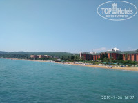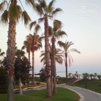 Территория отеля очень большая, красивая. Гуляешь как по ботаническому саду. Пляжная линия более комфортная именно в районе "Royal", там и песок всегда, и заход пологий, и волны спокойнее. В районе "Resort" уже намывает гальку и уклон при заходе чувствуется. Так что в "Royal" с детками -самое то!. Лежаки свободные можно найти в любое время как на пляже, так и у бассейна. Пляж очень чистый, мусора никогда не видели. Урны через каждые 2метра стоят.