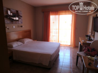 Мы приехали в отель поздним вечером, в районе 23.30. Нас заселили в корпусе SALAMIS. При заселении на ресепшене нам предложили пульт от кондиционера под залог в 10 евро, который возвращается при выселении. Изначально мы отказались от него, но как только пробыли в номере 10-15 минут поняли, что без него здесь не обойтись. Оставили залог и пользовались кондиционером. При выселении залог вернули. В связи с тем, что заселении было поздним вечером и на ужин мы не успели, на следующий день нам выдали талон на обед в любой из дней. Номер небольшой, но все необходимые здесь есть. При входе небольшой коридор, слева ванная комната (туалет, ванна, умывальник), далее небольшая комната, и достаточно большой балкон. В номере имеется: