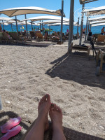 Море. Море супер. Практически всегда было прозрачным. Вход нормальный. Но в Кирише у всех пляж галка и вход в море галька. Надо быть к этому готовыми. Впрочем спецобувь решит эту проблему. Лежаки действительно не очень удобные. Лежать некомфортно. Еще минус для меня, это отсутствие деревянного настила между рядами. Коляску например придется тягать по камням. Справа правда есть в одно проходе.