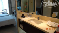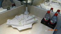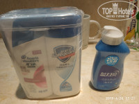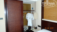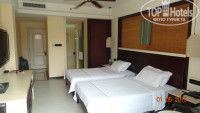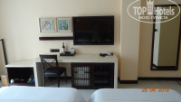 На балконе 2 стула, столик. Сушилки д/белья нет. Номер светлый, уютный! В секцию, куда вставляется брелок ключа, уже была засунута бумажка, при уходе из номера всегда работал кондиционер. В комнате: большое зеркало, большой ж/к телек, стол, 2 кровати с тумбочками, 2 стула+столик, торшер, маленький холодильник, чайник, стеклянный графин, 2 кружки, 2 стакана, 4 пакетика чая, коробка с салфетками, электрический фумигатор, 2 пары сланцев. На столе-бутылка вина, чай в деревянной коробочке, запечатанная колода игральных карт-это платно! В шкафу 2 халата, сейф, 5 шт. плечиков. В ванной: 2 пляжных полотенца, 2 больших полотенца, 2- д/лица, 2 набора зуб. пасты и щёток, 2 кусочка мыла, 2 рассчёски, ватные палочки, шапочки д/душа, жид. гель и шампунь в душевой, фен и 2 маленькие бутылочки с водой (это бесплатно). Есть в упаковке набор туриста (так же шампунь, зуб. паста и т.п.), на котором есть цена. Не распечатывайте! В номере было тихо, комаров не было. Кровати, подушки-удобные! Розеток в номере достаточно. Убираются каждый день и полотенца меняют так же, 2 бутылочки воды, мыло, туалет. бумагу всегда добавляли. По телеку есть платные каналы. Есть 1 русский бесплатный канал, но по нему опять же показывали китайцев. Поэтому мы телек не смотрели.