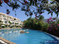 Про территорию: очень много растительности. Всё цветёт! На территории отеля красота. За цветами ухаживают, поливают. Отель состоит из нескольких соединённых между собой корпусов, есть 2 бассейна, детский уголок. По утрам в бассейне включают водопад! Мы несколько часов гуляли, фотались на территории отеля. И, действительно, есть номера без вида, т.е. на уровне подвала. Отель находится на горе, т.е. он-разноуровневый. И, конечно, чем выше этаж, тем лучше!
