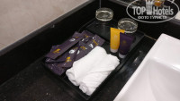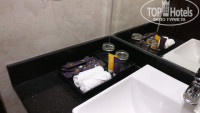 В номере есть телевизор, чайник, две бутылки воды по 0.33, кофе, чай, сахар. Есть холодильник, сейф. В ванной комнате душевая кабина, унитаз. Полный набор всяких штук для гигиены: шампунь, гель для душа, зубные щетки, бритва, расчески, шапочка для душа, ушные палочки. Все это ежедневно пополнялось.