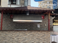 Территория маленькая, по сути бассейн с лежаками, шведский стол, столики под навесом. Ресепшн на «0» этаже, там диванчики и на «заднем дворе» теннисный стол. Места хватало всем.
