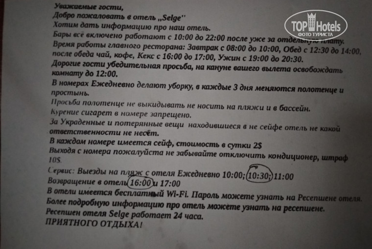 Оценка сервисов отеля автором