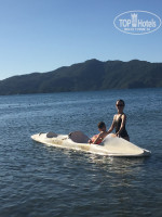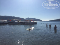 Пляж очень близко, нужно пройти через кафе Uno Momento, и все, ты на набережной! До бесплатного муниципального пляжа нужно идти минут пятнадцать налево, мы не ходили туда плавать. Мы ходили направо минуты 3 по набережной, около кафе-бара Taverna, если не ошибаюсь. Там наматрасники из белых полотенец сшиты. Цена за два лежака с зонтом - или 20 лир просто, или нужно на 30 лир купить у них напитки/мороженое. Вай фай включен, причем хороший, лучше чем в отеле. Есть душ, гамак, лодка-каяк, сап, на которых можно поплавать. Вообщем, нам нравилось)