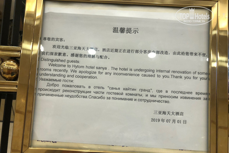Минусы: все в пятнах и ковролин, портьеры, небольшие есть на белье и полотенцах. В день нашего выезда ремонтные работы начались на нашем этаже( фото будет). Кондиционер работает отлично. Вай фай только в номере ( работает хорошо по утрам). За 10 дней постель поменяли 1 раз. Уборка удивительная вещь, вроде бы она есть, но в тот же миг ее нет :)) В чем она заключается: смена полотенец, донос 2 бутылок воды, разглаживание одеяла, вынос мусора, может она пылесосила ковролин( мы не замечали). В первый день оставили 10 юаней на чай, но она их отложила и не взяла( одни гиды говорят "чай" не принято давать, другие гиды говорят принято и можно давать на "чай", короче не поймешь их), больше не оставляли.