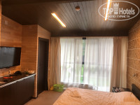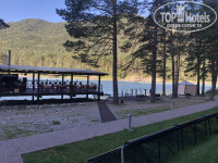 Побывал со своей любимой в этом отеле в последние деньки отпуска. Отдыхали вчетвером с друзьями. Брали номера стандарт. При заселении все четко, заселили даже немного раньше. Персонал вежливый и доброжелательный. Территория ухоженная, чисто по европейски. Беседки прямо на берегу, есть бесплатная зона BBQ. Парковка с видеонаблюдением. Есть бассейн с подогревом. Жили в основном корпусе в номере стандарт дабл. В номере душевая кабина, туалет, теплые полы. Белоснежное постельное белье и полотенца, есть холодильник, мини-бар платно, огромный телевизор, на полу ковролин, стены обшиты деревом. Есть чайник, штопор, чай/кофе. Огромное панорамное окно во весь номер. Завтрак просто огонь, всё очень вкусно в формате шведского стола. Еда очень вкусная, я был удивлён. Каша, омлет, овощи, курочка, балык из мяса, оливки, сыры, кофе, ватрушки, блинчики.