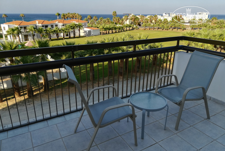 Итак вернёмся к первому дню. К 14.00 пришли на ресепшен и получили заветный ключ от номера D-24 (корпус D). За депозит взяли два пляжных полотенца (10 евро) и переходник для розетки (5 евро). Из плюсов номера - это шикарный вид на море и пляж, на который удобно любоваться с просторного балкона сидя в кресле и потягивая местное вино. Ещё - большая высокая кровать (на самом деле две кровати поставленные вместе под одним большим матрацем), а также нахождение номера на отдалении от концентрации громких ночных вечеринок - клуба NAVA (хотя приходилось закрывать балкон на ночь и спать под кондиционер), причём бассейны и ресторан были в считанных шагах. Из минусов, которые для нас оказались несущественны - номер располагался на третьем этаже без лифта (поход вверх-вниз - вместо фитнеса). Мебель, техника, стены и пол намекали, что их лучшие времена остались далеко позади. Но с другой стороны всё работало: ТВ, холодильник, микроволновка, тостер, чайник, плита, фен, кондиционер, сантехника - ни разу не омрачили отдых поломкой.