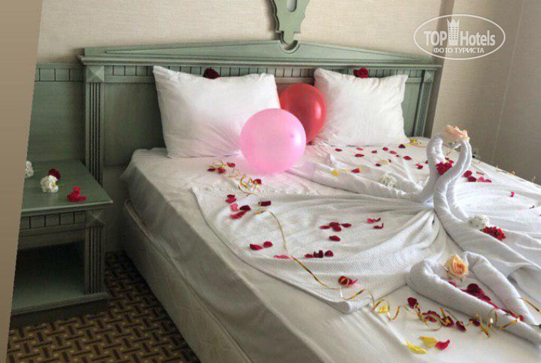 Приехали в отель с утра, ближе к часу нас заселили, но вместо бокового вида на море мы получили номер на крыше, в который дойти было не так просто, но согласились, а на следующий день предоставили очень хороший номер. Посещали отель, чтобы отметить день рождения, о котором предупредили заранее и да, нам украсили номер и принесли фрукты, было очень приятно.