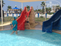 На 2 или 3 день мы дошли до бассейна с большими горками,но поняв что это не безопасно,ушли.Вроде есть контролирующий персонал и все равно дети под горками плавают,я вывихнул ногу, когда катился ,ребенок оказался внизу,и мне пришлось изворачиваться что бы его не зацепить,Родители будьте внимательны,следите за детьми.Ходил несколько дней ,нога ныла.Для маленьких ,есть горки с тентом в детской зоне. Вообще детская зона интересная ,яркая.Карусель есть,машинки на пульте управления ,детям кататься ,(за деньги) Каждый вечер мультфильмы смотрели,мини дискотека моих детей не заинтересовала и если честно мало места для нее .