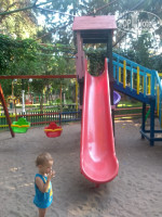 Территория: она прекрасна. Все утопает в зелени. Есть уличные тренажёры, детская площадка, скамейки для отдыха. У бассейна не лежали, предпочитали аквапарк, там тень и всегда были свободные лежаки. Во время работы горок есть спасатель как внизу, так и наверху. Детский бассейн чистый, но прохладный, т.к. воды меняется постоянно.