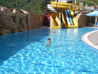 Приехали в 9 утра,заселение в 14:00.Сразу пошёл на ресепшн и за 20долларов в течении 15 минут нам дали номер,просил вид на горы,его и дали на 4м этаже главного корпуса.Номер нормальный,всё работало-без претензий,на этом плюсы и закончились!В столовой,язык не поворачивается назвать это рестораном,есть нечего,куски курицы,рис,макароны,какая-то соевая колбаса,салаты и овощи-по виду не первой свежести.Мяса мы за неделю не видели ни разу,один раз была рыба.Развлечений в отеле никаких нет,в баре водку и виски прямо на моих глазах разбавляли из поливочного шланга в бутылках,Раки(не разбавленный,дозатор на бутылках) после 19:00 по одному шоту в руки и через полчаса заканчивалась.Можно купить у старшего бармена за 20 долларов и тогда ты ему брат,он ставит бутылку на стол,сам приносит чистые стаканчики и даже апельсины приносит на закуску.До пляжа идти 5 минут,пляж сам небольшая полоска серо-желтого песка,шезлонгов мало,половина поломаны,в море надо заходить только с понтона,у берега лежат огромные валуны с острыми краями,можно повредить ноги на раз.Рядом с отелем кроме одного магазина ничего нет.До шопинг центра и других магазинов идти минут 15.Короче это дыра непроглядная,в которую мы в своё время попали из-за ограниченного бюджета и больше туда ни ногой.Да и не берите бесплатный трансфер в Кемер в шопинг центр,там цены дикие,мне пытались продать аля турецкие фирменные часы за 30 евро,которые на али экспрессе стоят 150 рублей.Всего хорошего,надеюсь мой отзыв поможет вам не сделать наших ошибок.