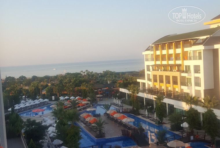 Отдыхали в данном отеле в начале сентября 2019 г. Дети в восторге, в следующем году хотят поехать именно туда. Прилетели в 17:30, в отеле были в 19:00, заселили быстро, в 20:00 уже ужинали. Номер нам предоставили с боковым видом на море, большой и просторный. По поводу одной двери и в ванную и в туалет это правда не очень удобно. Но по сравнению со всеми достоинствами отеля это не минус. По питанию все прекрасно, морепродукты, мясо, птица присутствовали. Из фруктов арбуз, дыня, апельсины, персики, нектарины, сливы, инжир, яблоки двух видов были каждый день. По развлечениям ходили только на вечерние представления, попали на концерт Димы Билана, дети в восторге. До моря идти метров 300. Все в шаговой доступности. Вообщем отель понравился, отдых удался.