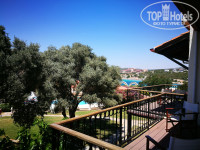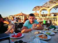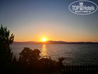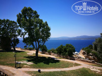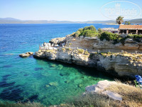 Про еду- Завтраки как и везде каши, которые сам заливаешь молоком, или есть овсяная с льняными семечками, очень нравилась ребенку, йогурты, выпечка, яичница, всякие варенья, мед и шоколадные пасты, сыр, колбаса, сосиски. Обеды включали в себя все что только можно придумать. Отдельный стол только одних десертов и тортов. Много разных салатов, жареное мясо, рыба, лепешки типо пиццы, фруктов мало. Были сливы, персики, яблоки, груши, арбузы и дыня. Ближе к обеду или ужину выстраивалась топа у забора перед столовой и начинался забег. Особо умные родители выпускали вперед своих детей, что бы те занимали лучшие места. Лучшие места это те, что с видом на море в первом ряду столиков. Я обычно шел вперед и занимал одно их этих мест. Особенно это актуально на ужин. Очень рекомендую. Вид на закат потрясающий. А если долго не засиживаться и спуститься к воде (чуть правее если стоять лицом к морю), то на фоне заходящего солнышка можно сделать классные фото на фоне скал. Скалы становятся ярко рыжего цвета и фото получаются изумительные.
