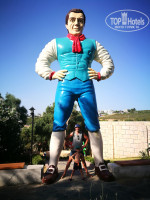 На территории отеля много разных пальм, красивых цветов, больших кактусов, гамак, «мельница», разные детские статуи из мультиков, Гуливер, домики. Вообщем много мест для красивых фото. Я увлекаюсь спортом, но в местный спортзал зашел только раз и вышел. Пара дорожек, велотренажер, гири набитые песком, штанга с минимальным весом и все, при этом душновато. Вообщем я старался больше плавать, что бы хоть как то потратить съеденное. Есть площадка для футбола и волейбола, пинпонг. Но обычно не видел, что бы там кто то играл.