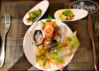 Питание брали завтрак и ужин. По питанию ребенка до 12 лет есть нюанс. Дети до 12 лет включительно на ужине могут пользоваться только кидс меню. В нем можно бесплатно выбрать одно блюдо, все остальное за дополнительную оплату. Но, отель идет на уступки маленьким гостям, и нам предложили оплатить 50% от стоимости ужина (411 бат или около 12$) и ребенок может питаться по системе шведский стол. Питание разнообразное, отличного качества. Ежедневно проходили шикарные тематические ужины. Была представлена и азиатская кухня, и средиземноморская, и европейская. Были и сыр с плесенью, и устрицы, и мидии, и суп том ям, и пицца и различные фрукты, и десерты и вкуснейшее мороженое т.д и т.п. Голодным там нельзя точно остаться. Официанты все вежливые и очень внимательные.