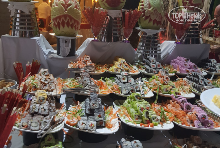 Кухня. Словами выразить свой восторг от вкуса и количества еды очень трудно)) несколько видов рыбы, говядина, баранина, курица, огромное количество фруктов и овощей, а также отдельно детский буфет. Отдельная благодарность шеф-повару Али, всегда находился в ресторане и лично контролировал весь процесс приготовления и подачи блюд.