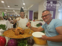 Ужин-шикарен,очень понравился плов с индейкой, говяжье жаркое, баранина с овощами, тушеные с овощами субпродукты ( легкое, печень), ну и гречка, макаронные изделия с различным наполнением, на гриле рыба, люля. В среду рыбный день, подают раков, мидий, креветок , кальмаров. Вообщем кто бы что не говорил, но еда там отличная. Работники стараются, все приветливые, услужливые.