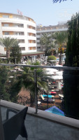 пляж,менеджеры по уборке мелкий мусор не убирают,начинают уборку в 7.00.тут же занимают своими голубыми полотенцами лежаки ,несколько раз насчитывал более 25 мест, потом банчат немцам.но мы занимали раньше ,поэтому не пригодилось к ним обращаться.у бассейнов говорят тоже заранее надо занимать,но мы там только мимо проходили за всё время.вода вроде чистая ,но морская намного лучше и полезнее,а хлорки и дома много.кухня нормальная,фрукты есть,да всё есть ,посетить можно ещё.приезжайте,я не просто так поставил пятерки,есть с чем сравнивать.отвечу на любой вопрос.удачи