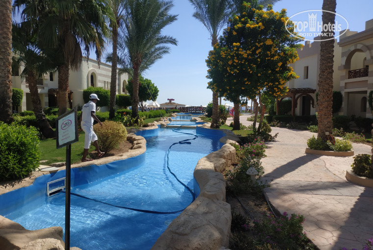 Доброго времени суток!) Вернулись с Египта. Отдыхали в данном отеле. Сложно начать но постараюсь изложить детально и кратко. Заселение: нас привезли на автобусе в гостиницу (дорога заняла минут 15) на ресепшене у меня спросили с женой я или подругой и дали фемели рум.(5$ администратору)). Номер на 2 детских кровати и одна 2х2 для нас. Теретортя: очень ухожена. Возле каждого корпуса свой босеин. Горки на 3+ небольшие быстро надоели. Анимация на 4. Для детей просто классный выбор. Еда: можно посетить 3 бесплатных ресторана "аля карт)" по записи на ресепшене. В объем ресторане ваш прием пищи начинается с поисков вилок ножей и солфеток)(не успевают разкладывать) голодными точно не будете еда быстро надоедает хочется чего-то ещё но все день в день однообразно. Это наверно единственный минус. Пляж и пирс: пляж песок. Пирс хороший рыбок больше чем куда нас возили на дайвинг. Чесно говоря если не смотреть на мелкие Гришки в виде серверовки, уборки номера, шмурдяка виде алкоголя на баре и т.д. то отдых прошол на 5. Не ищите недостатки а смело выбирайте эту гостиницу не портите себе отдых рассматривая развод на двери балкона, а смотрите рыбок и коралы именно Раде последнего вы едите в Шарм. Мы с семьёй остались довольны от посещения этого Отеля.