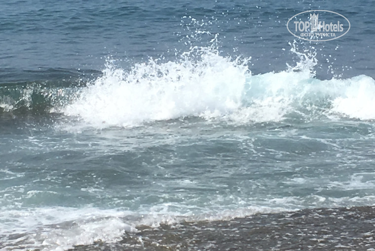 Заход в море хороший,но дальше всё равно есть плита и огромные камни,когда море спокойно это не мешает ,но за те дни что мы там были всегда была волна и висел красный флаг..то есть в море нельзя !Но люди рисковали,потому что у бассейнов нет места совсем -все шезлонги заняты (застелены полотенцами).