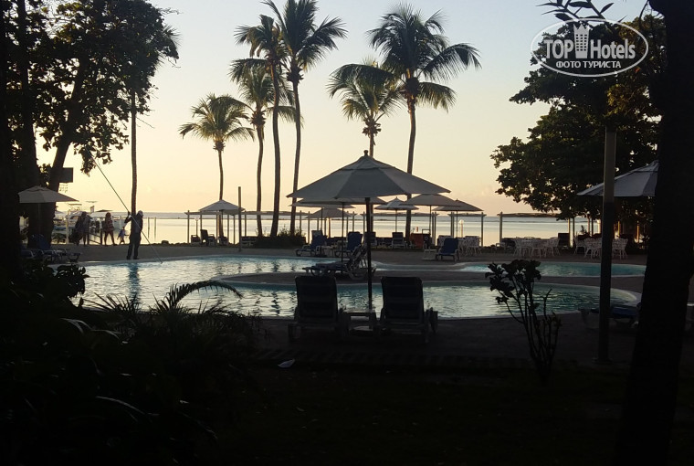 Территория отеля небольшая, очень зеленая,достаточно чистая и ухоженая.На территории отеля есть небольшой сувенирный магазинчик с купальниками,магнитами,маслами,ромом и другими мелочами(цены в три раза выше,чем в городе),два бассейна, один с дневными активностями, другой релакс.