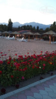 Пляж очень ухоженный. Удобные шезлонги.