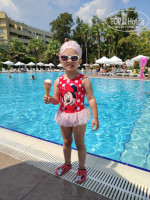 Бассейны – чистые, постоянно дежурят спасатели, лежаков всегда хватало, учитывая, что нам нужно было как минимум 6 штук рядом. В бассейн при детском клубе ходили всего пару раз, там ребятишкам скучно, так как воды по щиколотку. Наши дети плавали во взрослом с нарукавниками. В сам детский клуб не ходили, но на вечернем шоу постоянно видели, как детишкам вручали грамоты и призы за какие-то конкурсы, рисования, поделки. Детская площадка уставшая. На аква-горках катались несколько раз, та, что справа (если смотреть с бассейна) очень пологая, на середине пути застреваешь и приходится ползти на попе…., сомнительное удовольствие. По центру хорошая горка.