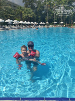 Трансфер заказывала через gettransfer, поэтому про общий ничего сказать не могу. Приехали в отель после 14:00 часов, поэтому номера нам дали сразу. Нам и моей сестре предложили вместо двух отдельных , один семейный номер (бунгало) с двумя спальнями и гостиной, но мы предпочли все же два отдельных, так как мы с ребенком и нам нужна тишина. В итоге заселились в номера де люкс клаб, какие и бронировали (2811, 2205, 5510). Никакого навязывания других номеров и хамского отношения не увидели, подарили девочкам с рецепшн шоколадки. В заявке указывали первый этаж, либо третий с балконом. Два номера были на первом этаже, с небольшой террасой, что очень удобно. У подруги был второй этаж, без балкона, но менять не стала. Так как территория очень большая, до домиков возят на мини-машинках и при выселении, звоните на рецепшн и просите забрать багаж - приедут заберут.