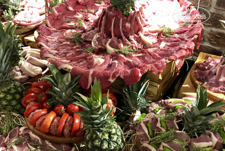 Отдельно о кухне: она предлагает выбор блюд на все вкусы, очень разнообразна, много «морских блюд», итальянская, индийская, турецкая и другие кухни мира, множество фруктов, сладостей; в этом году множество диетических блюд… В этом году появился отдельный зал : только для взрослых, что положительно отразилось для гостей без детей. Кстати, большой выбор для детей.