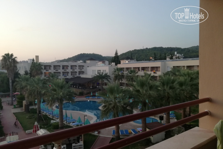 Первый раз пишу отзыв ). Прилетели в 3 ночи. В 5-00 уже были в отеле. С остановкой примерно 1,5 часа дороги. Искупались и ждали размещение до 14-00. Нас должны были заселить в 2 номера (2+3), но на ресепшен предложили фамили рум 2-х комнатный. Вид оказался шикарный с номера. смотрите фото. В целом в картина следующая. По питанию: меню не сильно конечно разнообразное, то есть повторяются блюда по завтраку через день. ОБед более менее разнообразен: форель, говядинка, барашек рагу и так далее. В целом все вкусное и съедобное. Что то бывает острит но терпимо. Дети ели норм. На территории 2 бассейна. С 2 горками и обычный. НА горках пару раз катались. Спуск к морю по лестнице 60 ступенек )) В основном на море. Лежаки на пирсе и вдоль берега. Мы занимали лежаки с 8-00. Бывает то на пирсе все занято. Своего пляжа нет. Заходили в море по песочку соседнего отеля без проблем или с пирса. Вода чистая. Местами есть камни большие, будьте аккуратны. Но это ближе к пирсу. Анимация не о чем. Утром 10 минут типа разминка и все. Вечером минут 30 и расходятся все. С одной стороны хорошо. До 2-00 никто не долбит на диско. Только с соседнего отеля слышно немного. Отель спокойный. Молодежь есть но тихо в основном. В целом довольны отдыхом. Нормальная 4. Если не требовать на 5 +, то можно отдохнуть норм. Позже выложу видео на Ютубканале. Название канала "Ежь". Я прошел и снял отель из номера до моря.