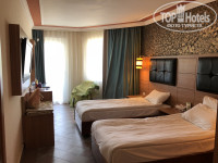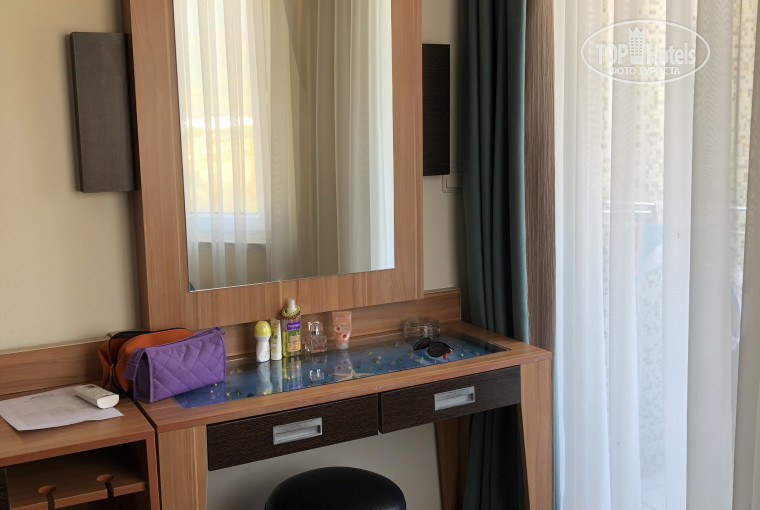 Мы жили в старом здании. Номер, чистенький, маленький, шкаф маловат, всего 5 вешалок из 10 почему то., не хватало кресла или стула(мы взяли пластиковый стул с балкона) чтоб на него положить какие-то вещи, но и с другой стороны, погода хорошая, море тёплое, мы не приехали сидеть в этом номере, недельку можно и пережить :)